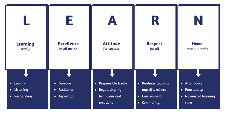 Values are principles that guide behaviour. At Raynham Primary School, adults are encouraged to model values and to give time for reflective practices. We believe that this empowers individuals to be effective learners and good citizens. Our school values are:
